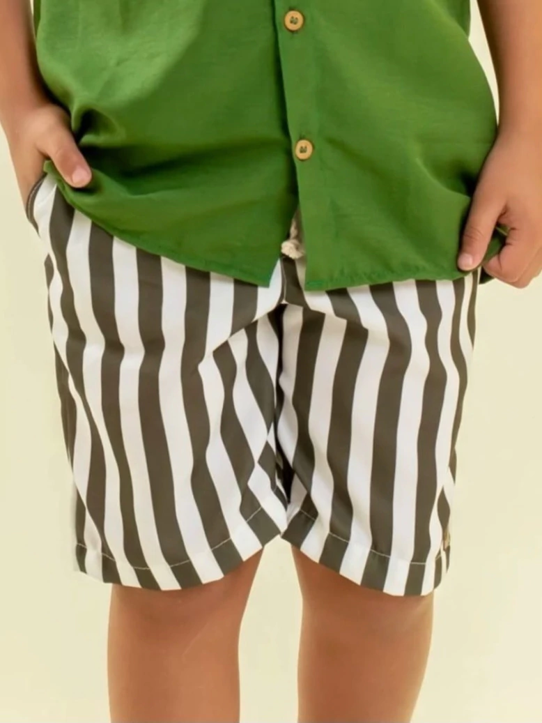 Esse short com listras verticais é perfeito para um visual moderno e despojado. Confeccionado em tecido de alfaiataria com toque leve e macio, une elegância e liberdade de movimento. Ideal para passeios, festas, eventos casuais e até looks combinadinhos com os pais.